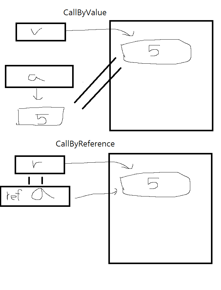위에는 call by value이고 밑은 call by reference이다